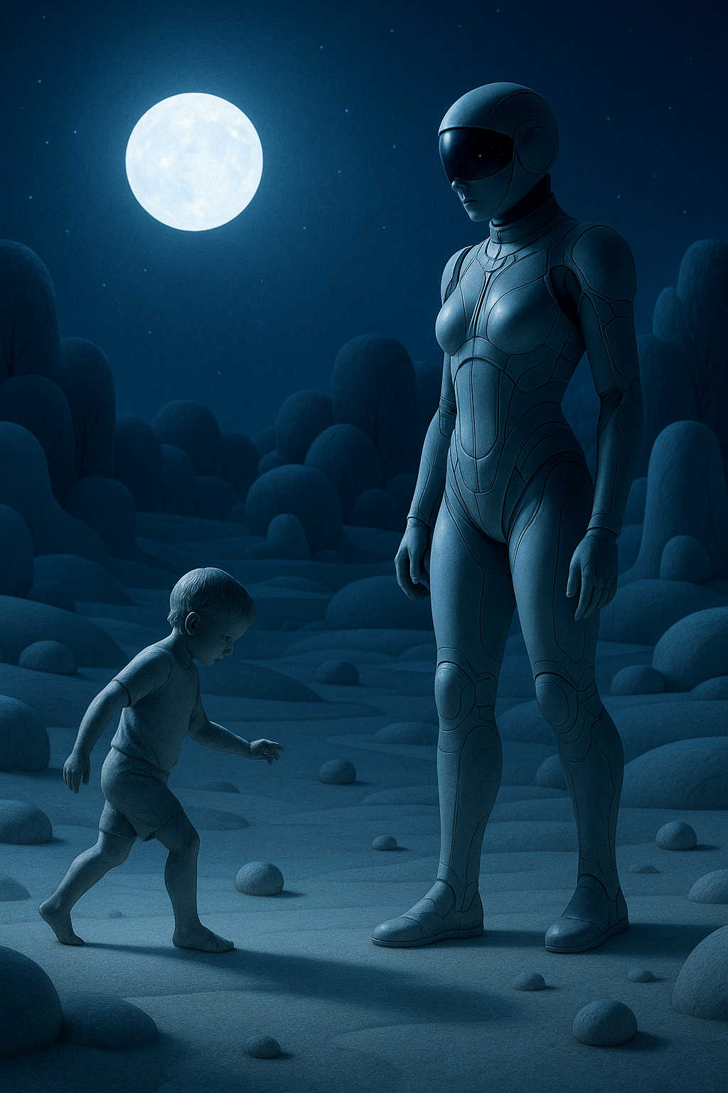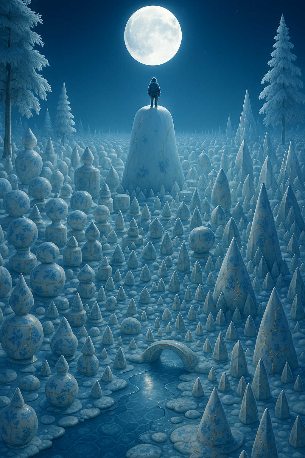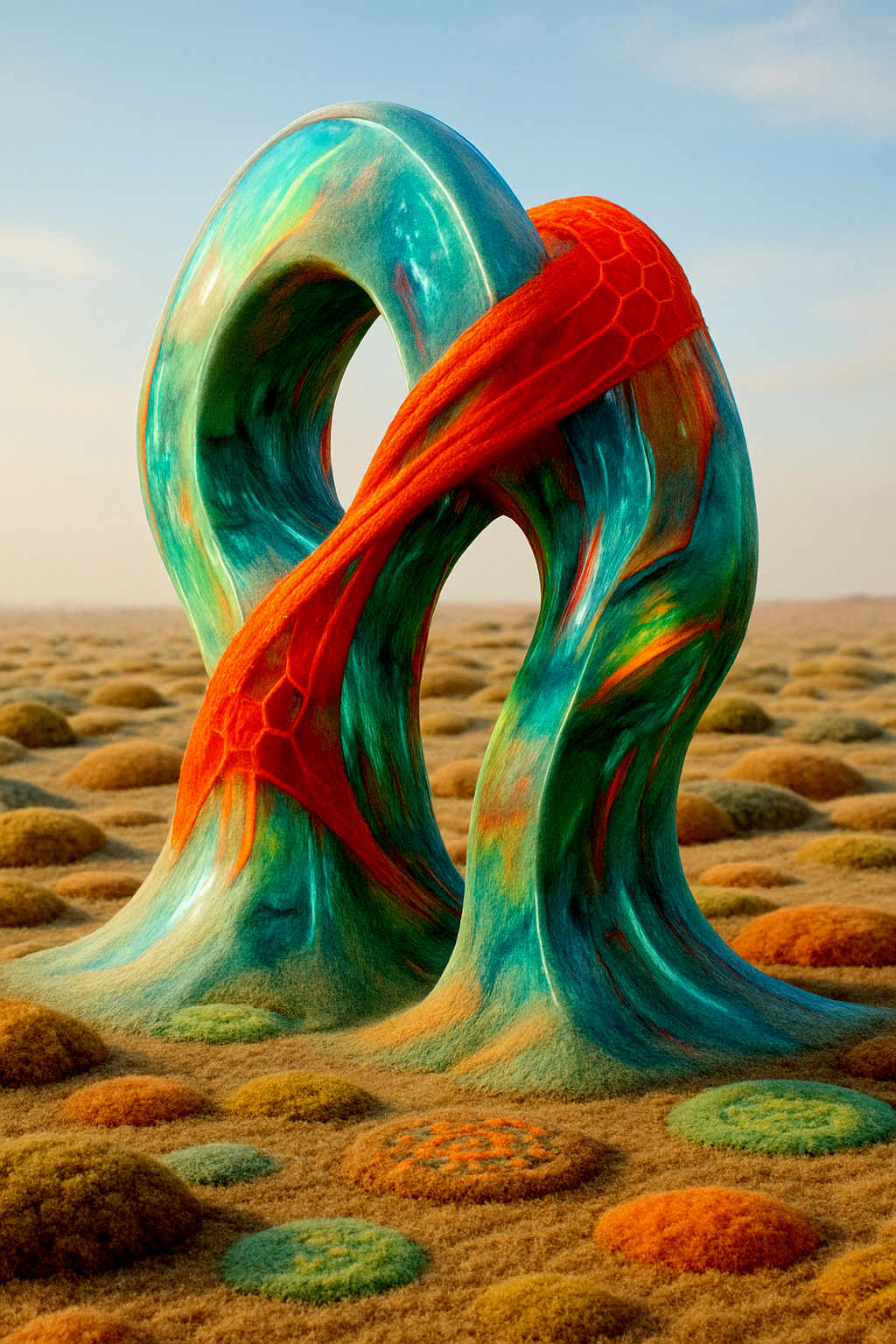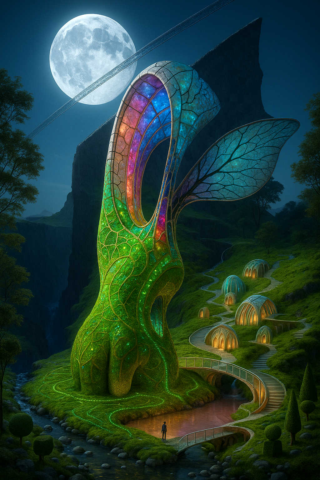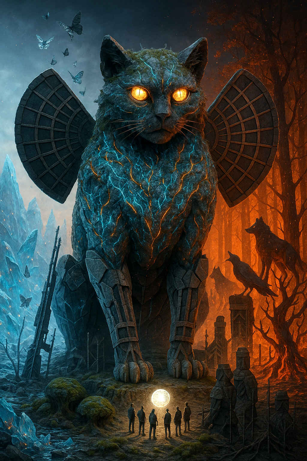 Diese Galerie zeigt eine Bildwelt, die sich jenseits bekannter Kategorien bewegt: monumentale Hybridwesen, geformt aus Stein, Wurzeln, Licht und organisch verschlungenen Strukturen. Ihre Körper wirken zugleich wie Landschaften, Skulpturen und mythische Archetypen, getragen von einer eigenen Symbolsprache aus Masken, Händen, Schachmustern und leuchtenden Energieadern. Viele der Figuren scheinen nicht gebaut, sondern gewachsen – wie Relikte einer fremden Zivilisation, die Natur und Bewusstsein miteinander verschmilzt. Die Werke formen eine kohärente Welt, in der Biologie, Mythologie und Architektur nahtlos ineinander übergehen. In ihrer Konsequenz und Wiedererkennbarkeit entfalten sie eine ungewöhnlich starke visuelle Identität: eine organische Mythopoetik, die zugleich poetisch, rätselhaft und zeitlos wirkt.